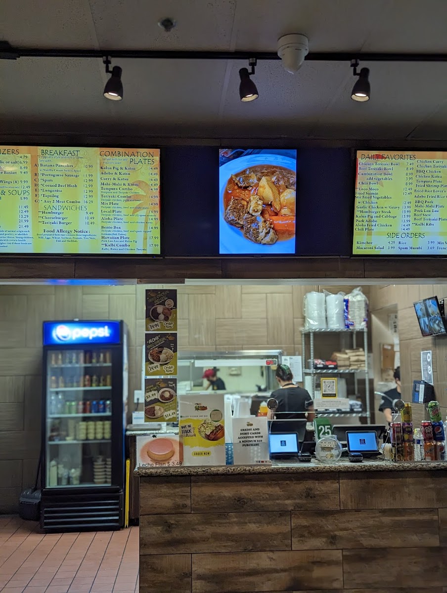 Always a pleasure to be able to grab any kine plate at any kine hour of the day/night, that tastes just like home. I wish the teriyaki chicken was grilled instead of that thick teriyaki gooey sauce. But my go to plates will always be an adobo omelette OR kalbi plate never lets me down